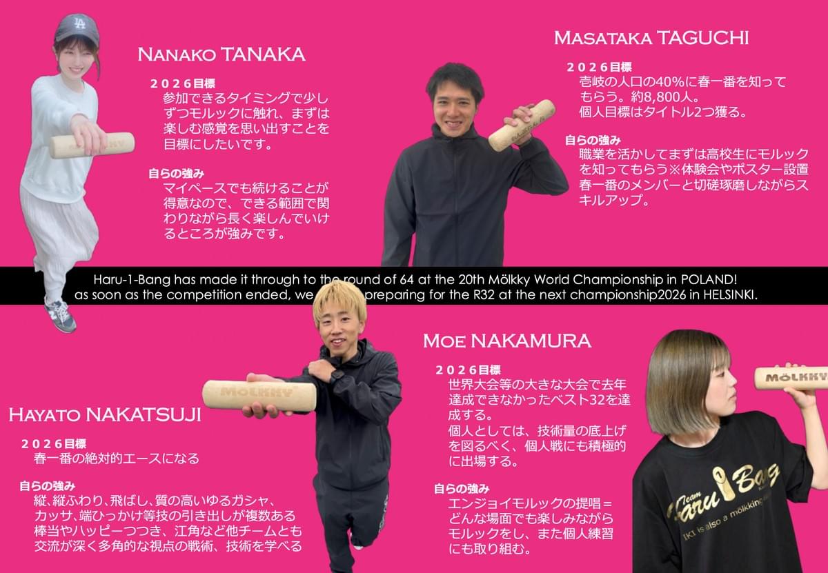 ◆講師:第1回梅坂ふろしき杯モルック競技会優勝メンバーを中心に編成された専属のクラブチーム「春一番」